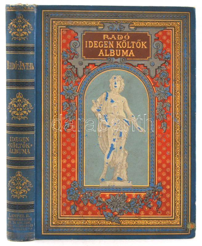 Radó Antal: Idegen költők albuma. Műfordítások a XIX. század lyrájából. Mannheimer Gusztáv, Cserépy Árpád és mások eredeti rajzaival. Bp. 1891, Lampel. Díszes, aranyozott, festett kiadói egészvászon-kötésben, körben arany élmetszéssel.