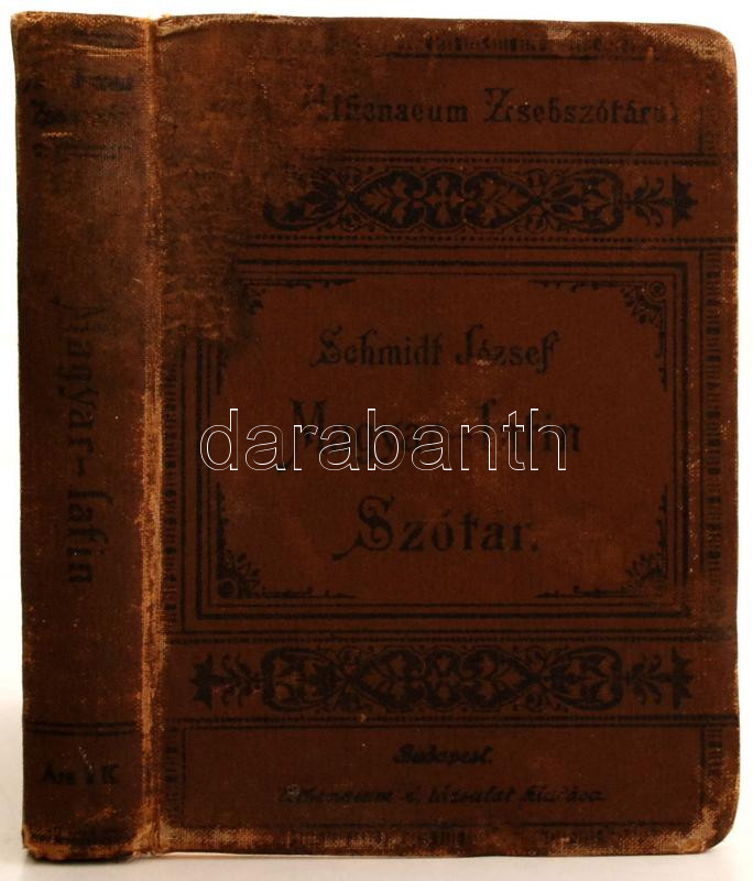Schmidt József: Magyar-Latin szótár. Bp., é.n., Athenaeum. Kiadói kop... https://www.darabanth.com/hu/254-Gyorsarveres/254.0/Festmeny-mutargy-papirregiseg-egyeb/Konyvek-Egyeb-ritkasagok~400037/Schmidt-Jozsef-Magyar-Latin-szotar-Bp-en--Athenaeum-Kiadoi-kopottas-kisse-laza-egesz~II1237957