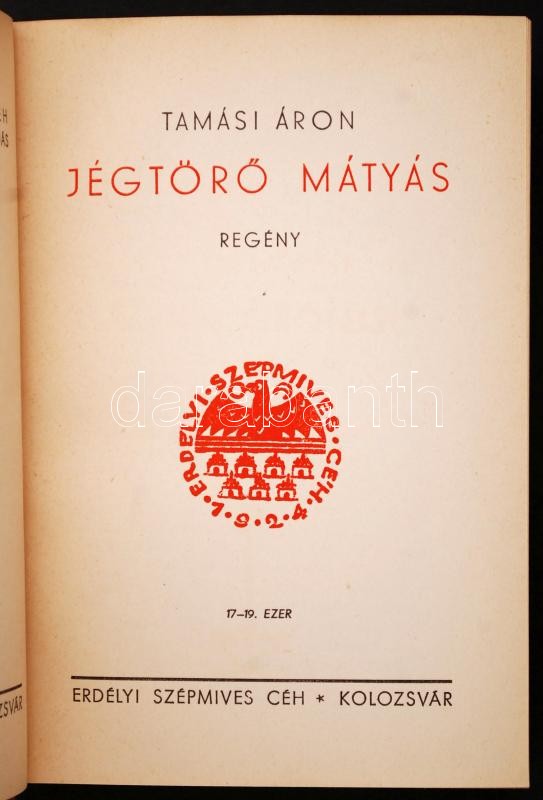 Tamási Áron: Jégtörő Mátyás. Kolozsvár, 1934, Erdélyi Szépmíves Céh. K... https://www.darabanth.com/hu/254-Gyorsarveres/254.0/Festmeny-mutargy-papirregiseg-egyeb/Konyvek-Egyeb-ritkasagok~400037/Tamasi-Aron-Jegtoro-Matyas-Kolozsvar-1934-Erdelyi-Szepmives-Ceh-Kiadoi-egeszvasz~II1233561