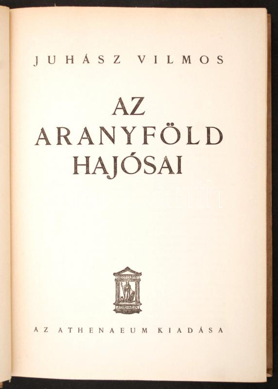 Juhász Vilmos: Az aranyföld hajósai. Bp., é.n., Athenaeum. Kiadói egés... https://www.darabanth.com/hu/254-Gyorsarveres/254.0/Festmeny-mutargy-papirregiseg-egyeb/Konyvek-Utazas-varosok~400012/Juhasz-Vilmos-Az-aranyfold-hajosai-Bp-en-Athenaeum-Kiadoi-egeszvaszon-kotesben~II1233923