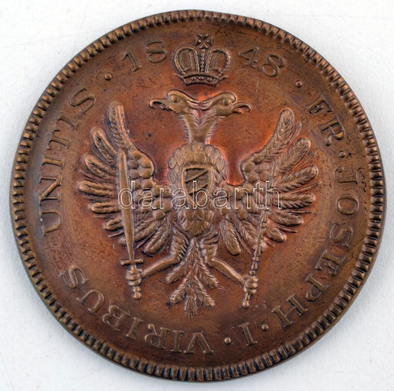 "1848 Fr. Joseph I. Viribus Unitis" feliratú gombfej https://www.darabanth.com/hu/254-Gyorsarveres/254.0/Festmeny-mutargy-papirregiseg-egyeb/Militaria~400006/1848-Fr-Joseph-I-Viribus-Unitis-feliratu-gombfej~II1236830
