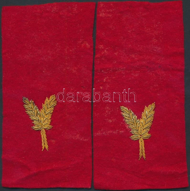 Leírás: 1939 mintájú aranyszálas tábornoki gallérjelzés, bouillon hímzéssel, Bántay Alfréd (1891-?), a 6. vegyesdandár parancsnokának hagyatékából