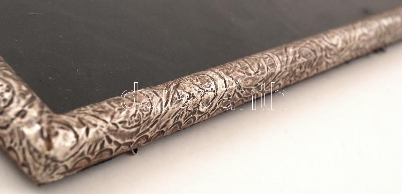 Leírás: Ezüstlemezzel borított fényképtartó, falrakaszható, 24x30cm