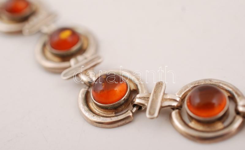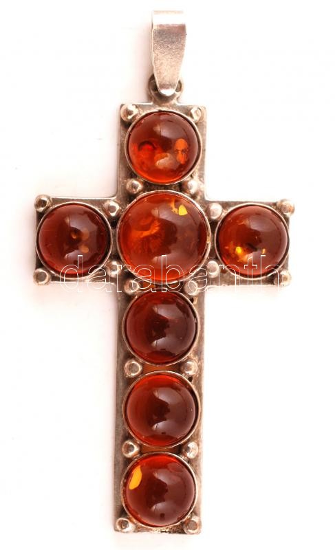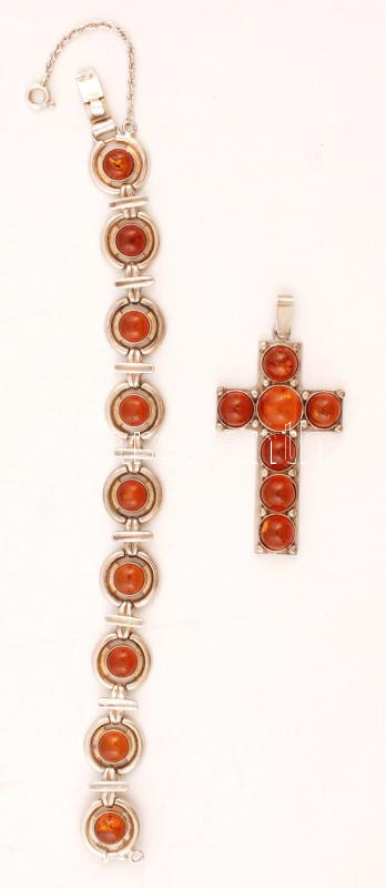 Leírás: Borostyánnal díszített ezüst(Ag) kereszt alakú medál és karkötő(h: 16,5 cm), br: 17,6 g