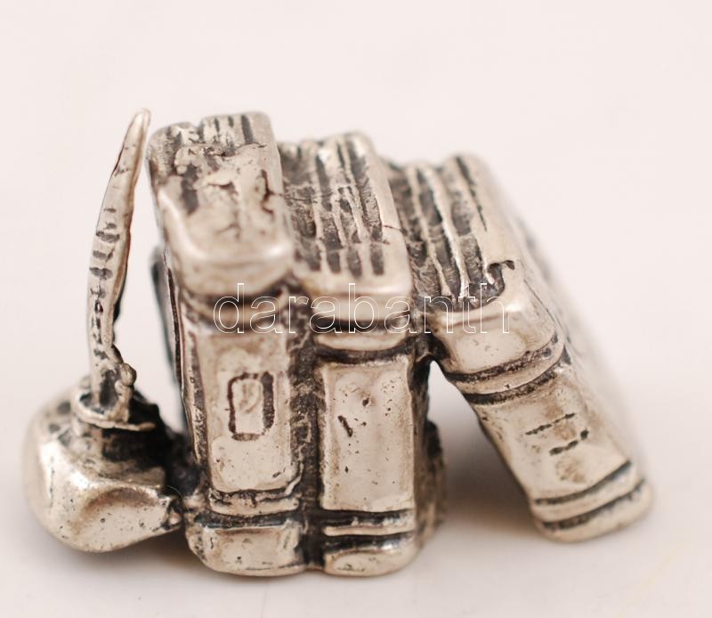 Leírás: Ezüst könyvsor, jelzés nélkül, Ag., 13,4gr., 3x2cm/ Silver set of books, without marking, Ag. 13,4gr. 3x2cm