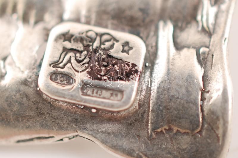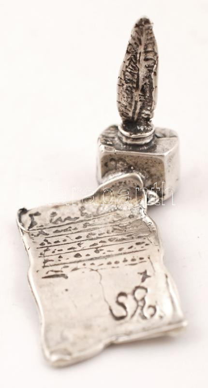 Leírás: Ezüst penna és papír, jelzett, Ag., 7,2gr., 2,5x3cm/ Silver quill and paper, signed, Ag. 7,2gr. 2,5x3cm