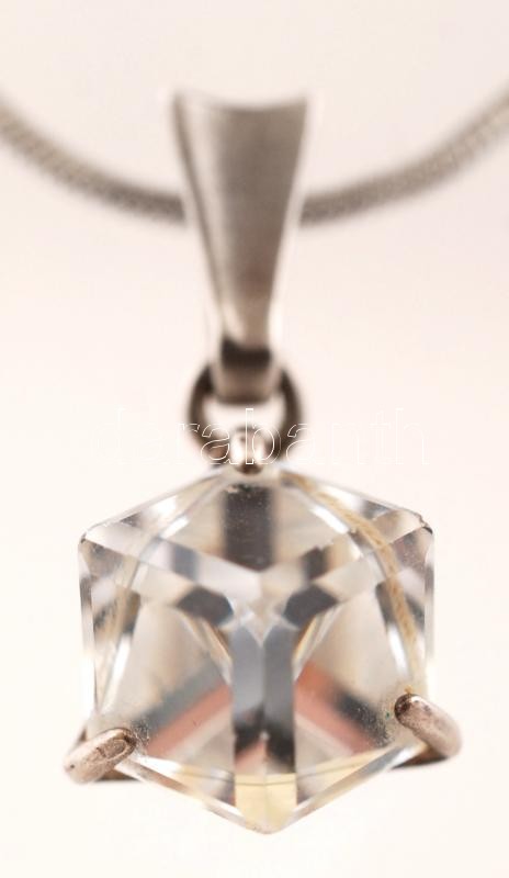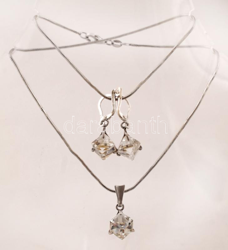 Leírás: Ezüst(Ag) lánc köves medállal, hozzáillő fülbevalópárral, jelzett, h: 46 cm, br: 13,7 g