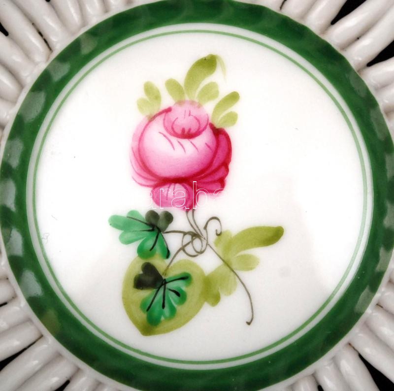 Leírás: Herendi rózsamintás áttört tálka, kézzel festett, hibátlan, jelzett, d: 12 cm, m: 4,5 cm