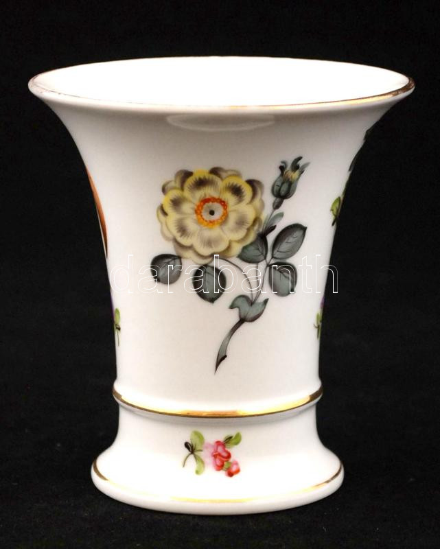 Leírás: Herendi termésekkel díszített kis váza, kézzel festett, hibátlan, jelzett, m: 10 cm