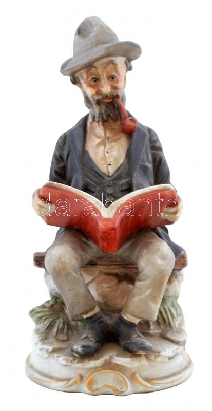 Leírás: Pipázó nagypapa, kézzel festett, jelzés nélkül, bisquit porcelán, m:16 cm