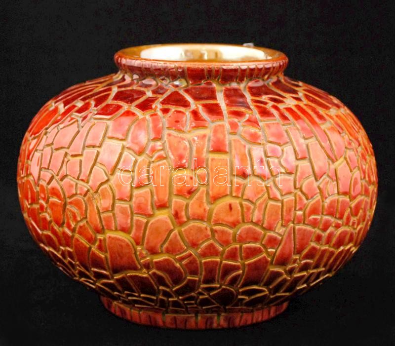 Leírás: Zsolnay repesztett mázas váza, jelzett, lepattanásokkal, m:12 cm