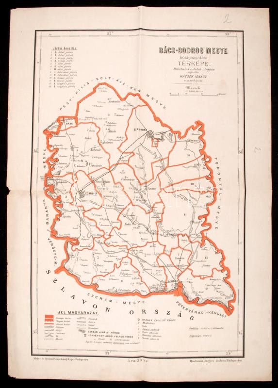 1880 Bács-Bodrog megye közigazgatási térképe.