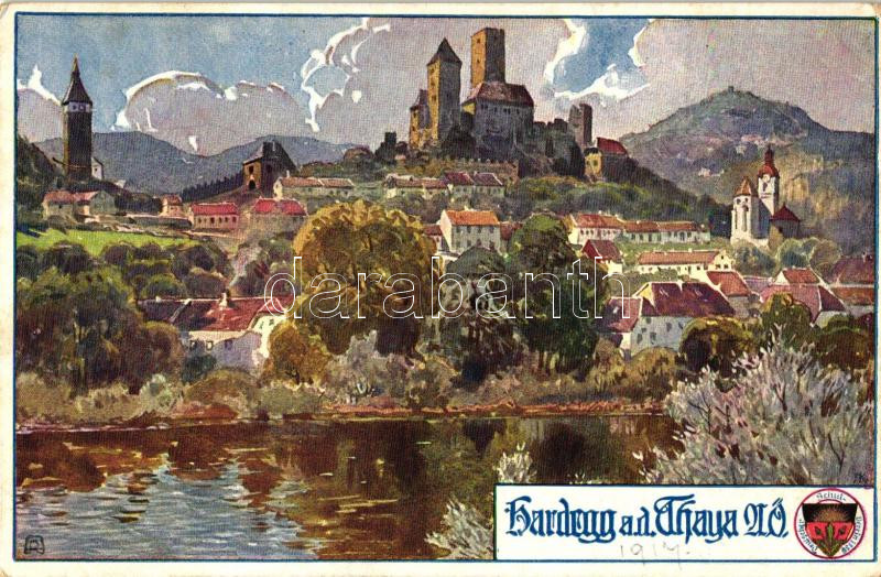 Leírás: Hardegg an der Thaya, castle, Deutscher Schulverein Karte No. 704, German art postcard, s: AR (EK)
