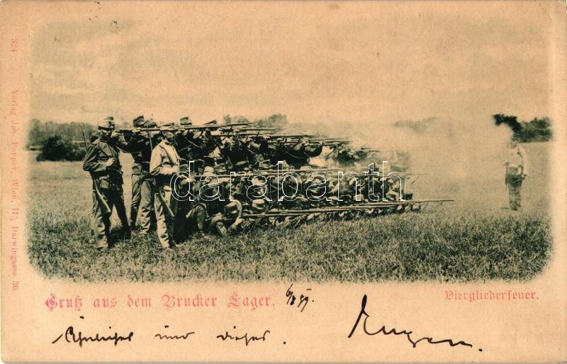 1899 Lajtabruck, Bruck an der Leitha; katonák, kiképzés, négyes sortűz... https://www.darabanth.com/hu/254-Gyorsarveres/254.0/Kepeslapok/Burgenland~200015/1899-Lajtabruck-Bruck-an-der-Leitha-katonak-kikepzes-negyes-sortuz-soldiers-military-dri~II1236597
