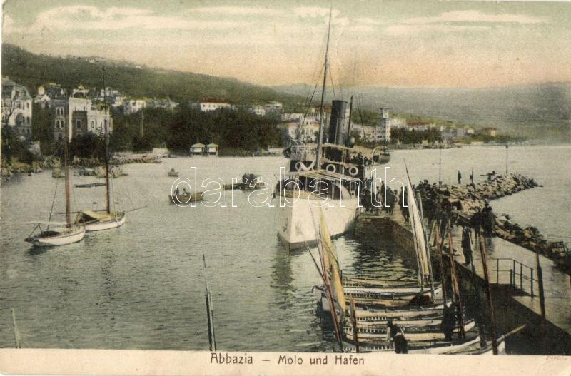 Abbazia, Molo und Hafen / steamship station (EK) https://www.darabanth.com/hu/254-Gyorsarveres/254.0/Kepeslapok/Horvatorszag-Delvidek~200013/Abbazia-Molo-und-Hafen-steamship-station-EK~II1236647