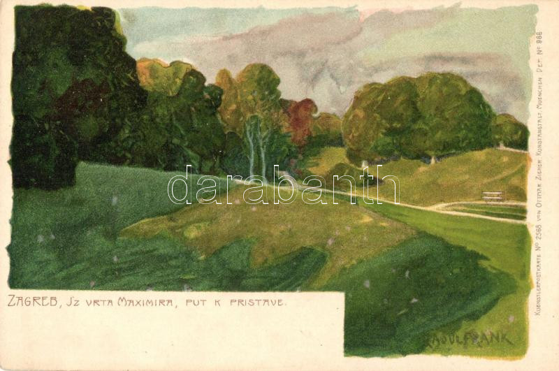 Leírás: Zagreb, Iz vrta Maximira, put k pristave, Ottmar Zieher Künstlerpostkarte No. 2568. litho s: Raoul Frank