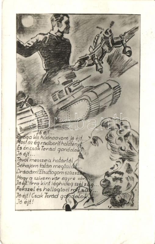2 old WWII graphic postcards, Hungarian military songs, tank, aircraft https://www.darabanth.com/hu/254-Gyorsarveres/254.0/Kepeslapok/Katonai~200110/2-old-WWII-graphic-postcards-Hungarian-military-songs-tank-aircraft~II1235585