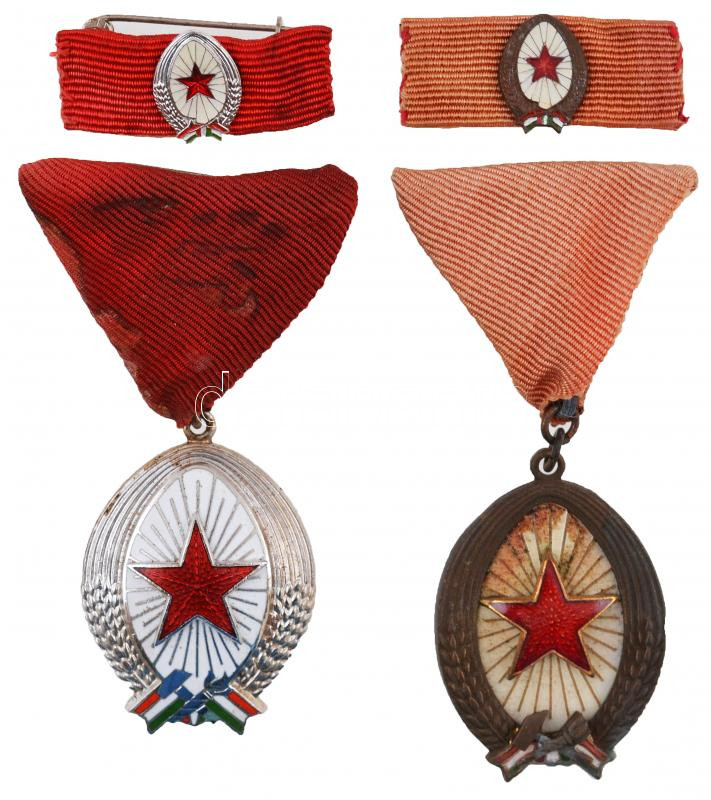 Leírás: 1964. "Munka Érdemrend" bronz fokozata, zománcozott Br kitüntetés mellszalagon, szalagsávval és miniatűrrel + 1985. "Munka Érdemrend" ezüst fokozata, ezüstözött, zománcozott Br kitüntetés mellszalagon, szalagsávval és miniatűrrel T:2,2-