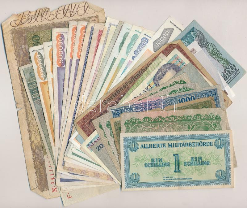 30db-os vegyes külföldi bankjegy tétel, közte Ausztria, Jugoszlávia, Románia T:vegyes