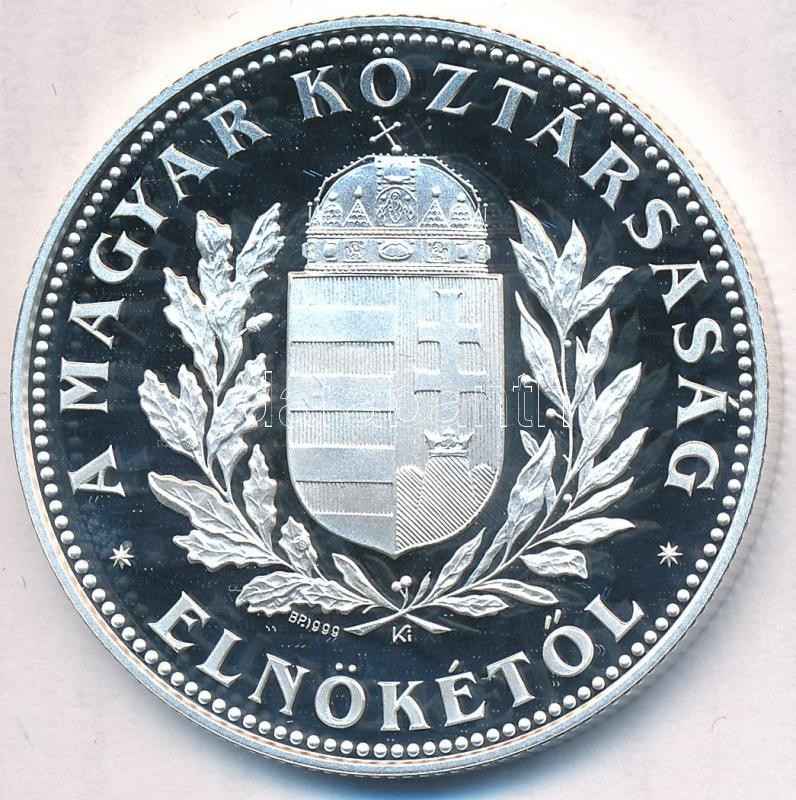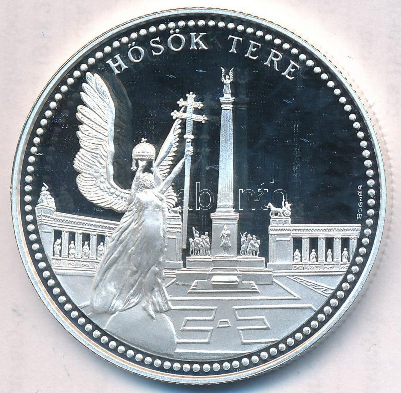 Leírás: Kósa István (1953-) DN "A Magyar Köztársaság Elnökétől / Hősök tere" Ag emlékérem tanúsítvánnyal, bársony dísztokban (31,27g/0.999/42,5mm) T:PP