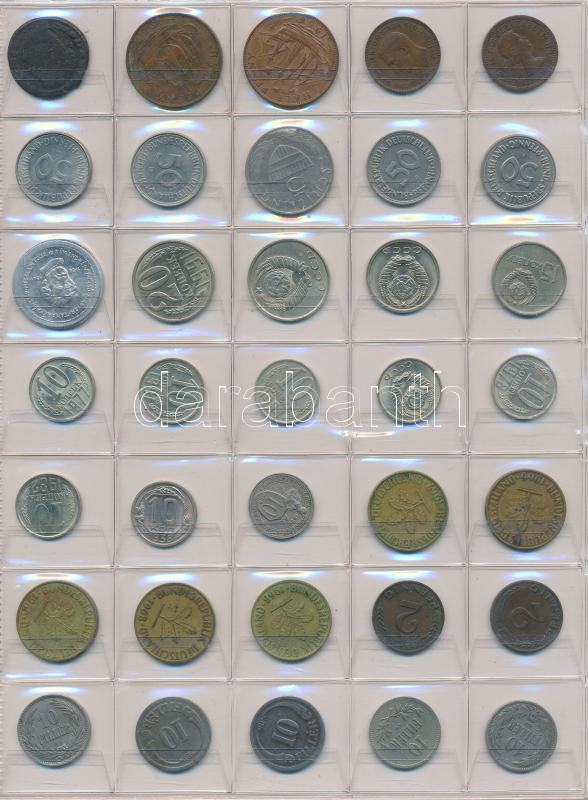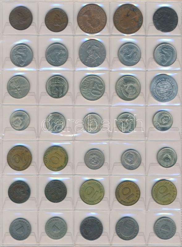 Leírás: 65db vegyes magyar és külföldi fémpénz, közte 10 fillérek a korona, pengő időszakból, szovjet, brit érmék és egy római bronzpénz T:vegyes