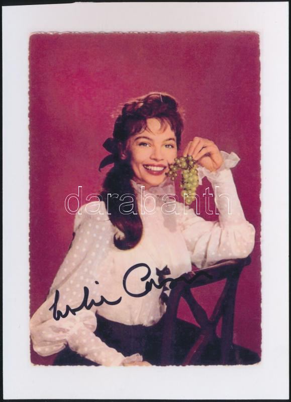 Leírás: Leslie Caron(1931-) francia származású amerikai színésznő, balett-táncos aláírása az őt ábrázoló fotón / autograph signature