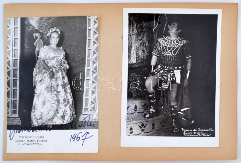 Leírás: cca 1967 Biancamaria Casoni és Luigi Ottolini operaénekesek aláírásai őket magukat ábrázoló fotón, kartonra ragasztva