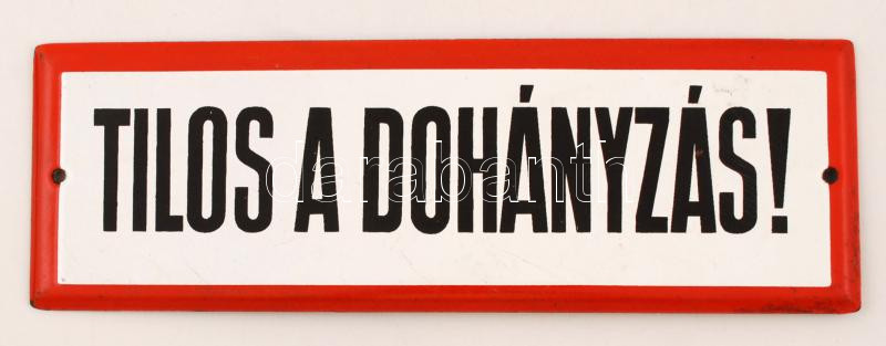 "Tilos a dohányzás!" feliratú zománcozott tábla, 10x30 cm https://www.darabanth.com/hu/255-Gyorsarveres/255.0/Festmeny-mutargy-papirregiseg-egyeb/Bolhapiac~600010/Tilos-a-dohanyzas-feliratu-zomancozott-tabla-10x30-cm~II1242982