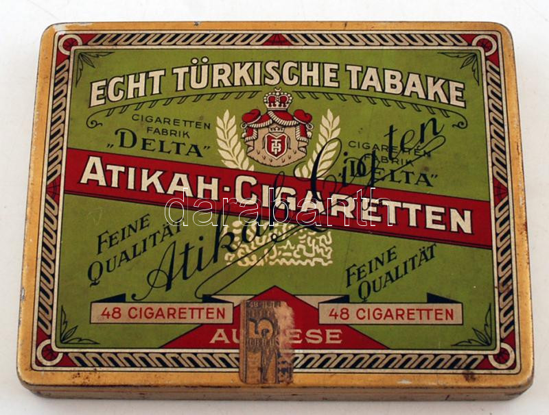 cca 1940 "Atikah-Cigaretten" feliratú fém cigarettás doboz, 1. világhá... https://www.darabanth.com/hu/255-Gyorsarveres/255.0/Festmeny-mutargy-papirregiseg-egyeb/Bolhapiac~600010/cca-1940-Atikah-Cigaretten-feliratu-fem-cigarettas-doboz-1-vilaghaborus-zarjeggyel-belse~II1247538