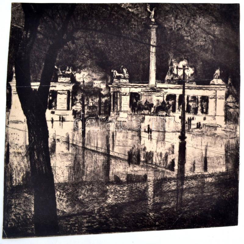 Leírás: Jelzés nélkül: Hősök tere, rézkarc, papír,körbevágva, 27x27cm