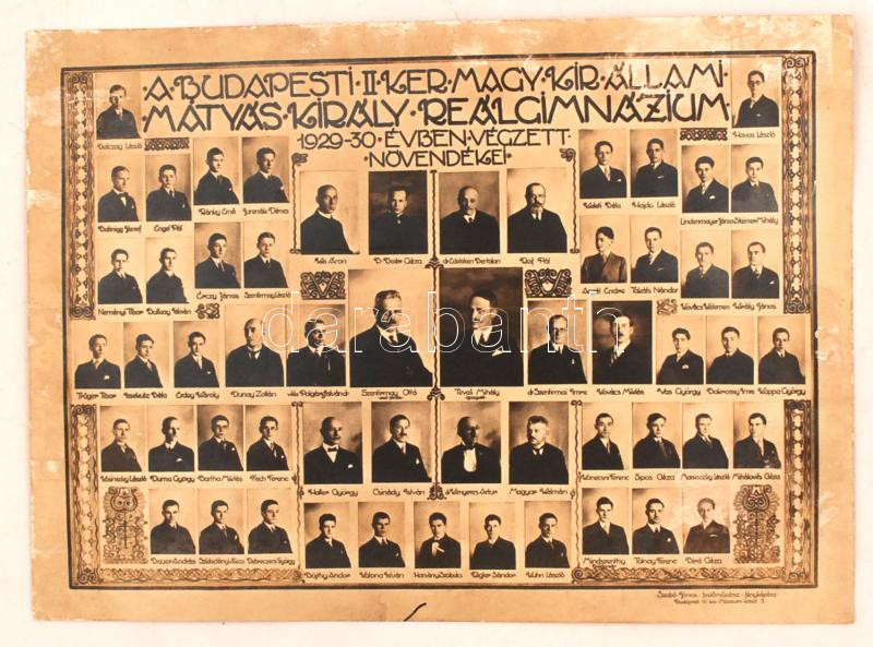 1930 A Budapesti II. ker. Magy. Kir. Állami Mátyás Király Reálgimnáziu... https://www.darabanth.com/hu/255-Gyorsarveres/255.0/Festmeny-mutargy-papirregiseg-egyeb/Foto~600018/1930-A-Budapesti-II-ker-Magy-Kir-Allami-Matyas-Kiraly-Realgimnazium-vegzos-novendekein~II1239887