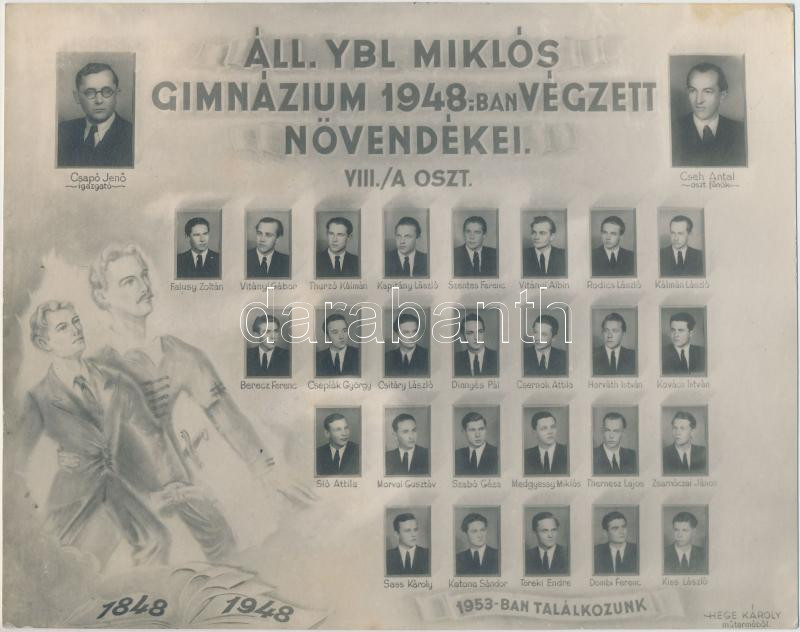 1948 Székesfehérvár, Az Ybl Miklós Gimnázium kistablója 28 nevesített ... https://www.darabanth.com/hu/255-Gyorsarveres/255.0/Festmeny-mutargy-papirregiseg-egyeb/Foto~600018/1948-Szekesfehervar-Az-Ybl-Miklos-Gimnazium-kistabloja-28-nevesitett-portreval-Hege-Karol~II1240172