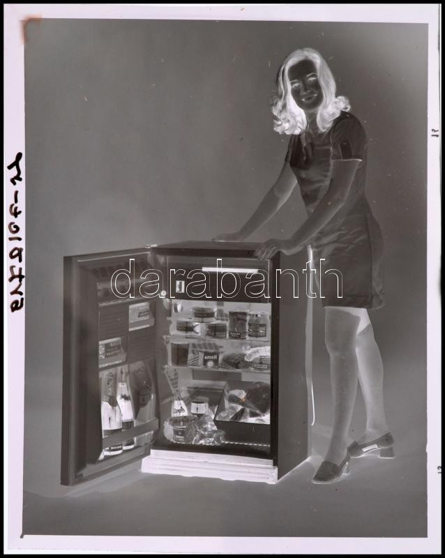 Leírás: 1973 Jászberény, a hűtőgépgyár termékéről készült reklám felvételek negatívja, 4 db professzionális műtermi fotó negatívja, 6x7 cm