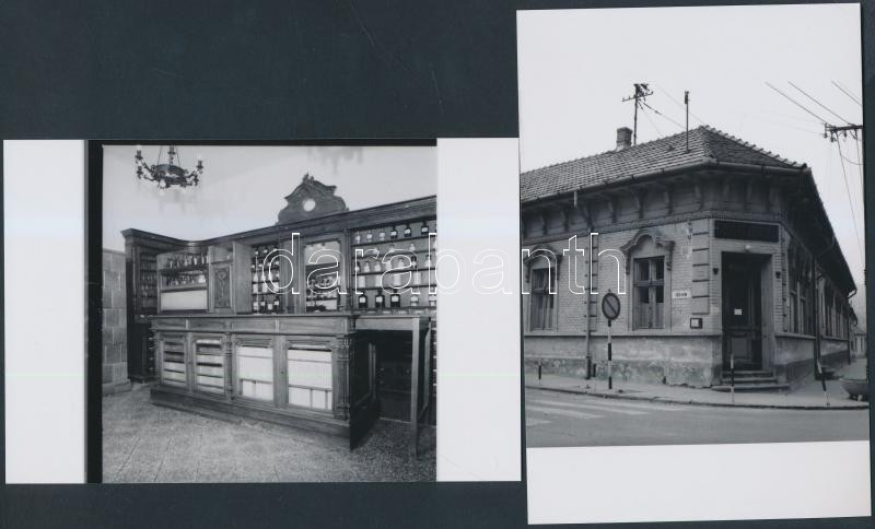 Leírás: 1980 Visegrádi gyógyszertár külső és belső képe, 2 db korabeli negatívról készült modern nagyítás, 10x15 cm-es fotópapírra