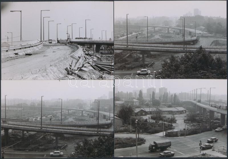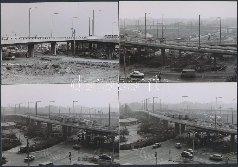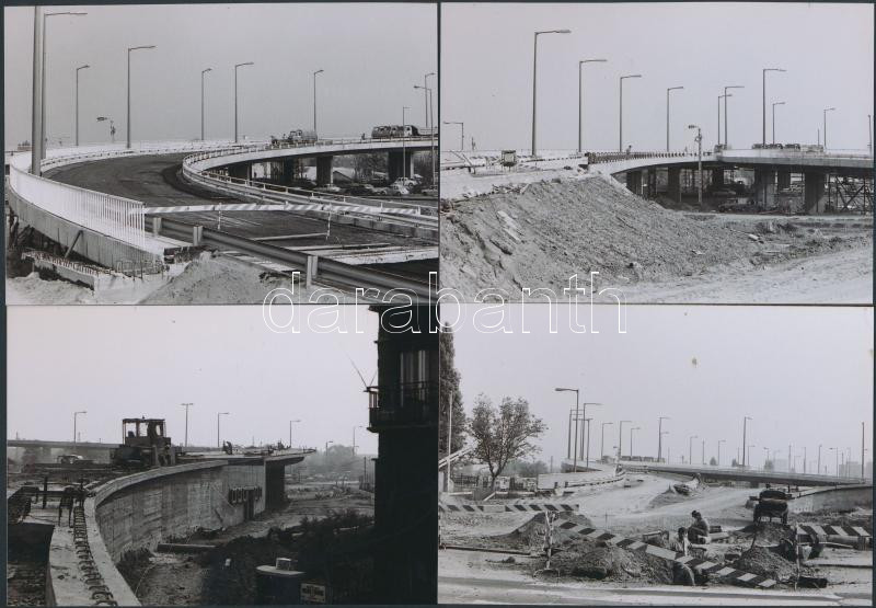 Leírás: 1982 Budapest, M3-as autópálya Hungária úti csomópontjának, felüljáró rendszerének építése, 13 db korabeli negatívról készült modern nagyítás, 9x13 cm