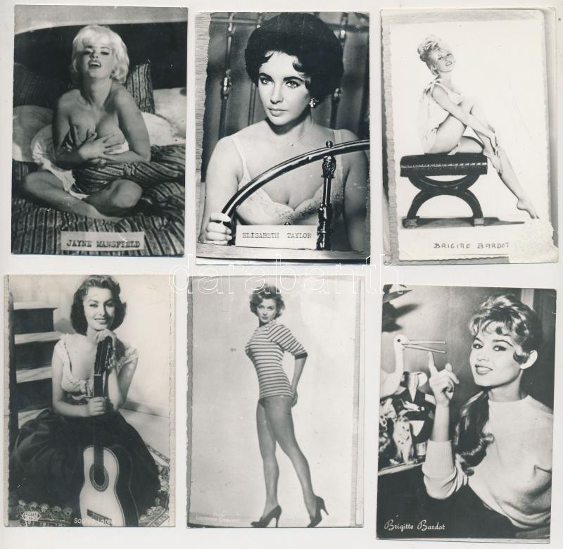 26 db híres színésznőkről készült csábító, többségében finoman erotikus fotó(Jayne Mansfeild, Elisabeth Taylor, Sophia Loren, Brigitte Bardot, Marion Michael, stb.), 9,5x6,5 cm