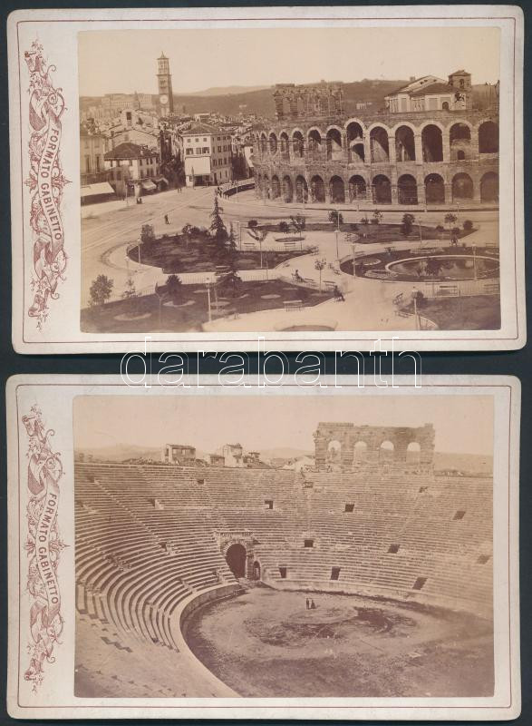 Leírás: cca 1880 Olaszország: Roma, Arco, Verona 5 db keményhátú fotó / Italy: Rome, Verona, Arco 5 vintage photos 16x11 cm