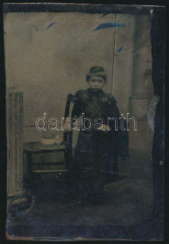 Leírás: cca 1900 Kislány, ferrotípia, 9x6 cm / ferrotyp