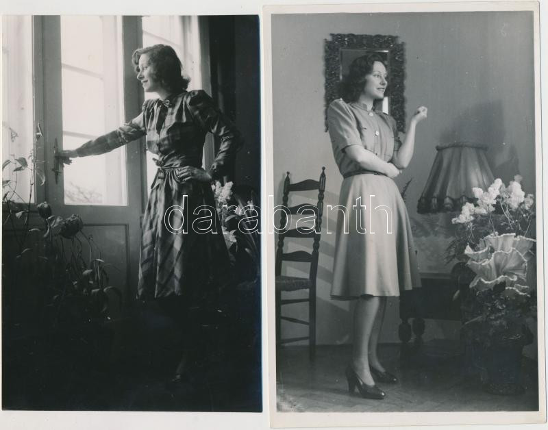 Leírás: cca 1940 Muráti Lili (1912-2003) színésznő otthonában, Rozgonyi pecséttel jelzett vintage felvételei, 2 db fénykép, 17x11 cm