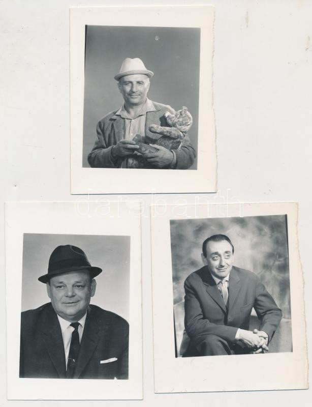 Leírás: cca 1965 Kibédi Ervin, Kazal László és Alfonzó, 3 db színészportré, 9x7 cm
