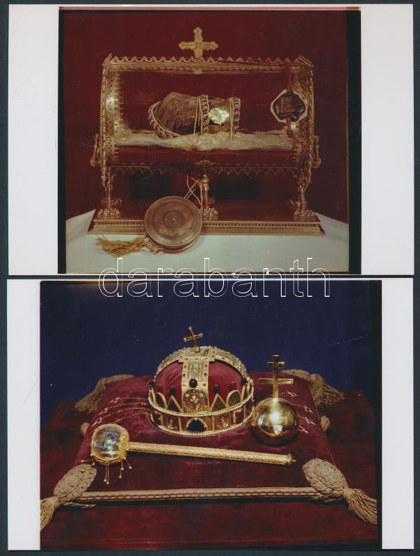 cca 1968 Koronázási ékszerek (jelképek) és a Szent Jobb, a Főfotó archívumában talált 2 db korabeli negatívról készült modern nagyítás, 10x15 cm-es fotópapírra