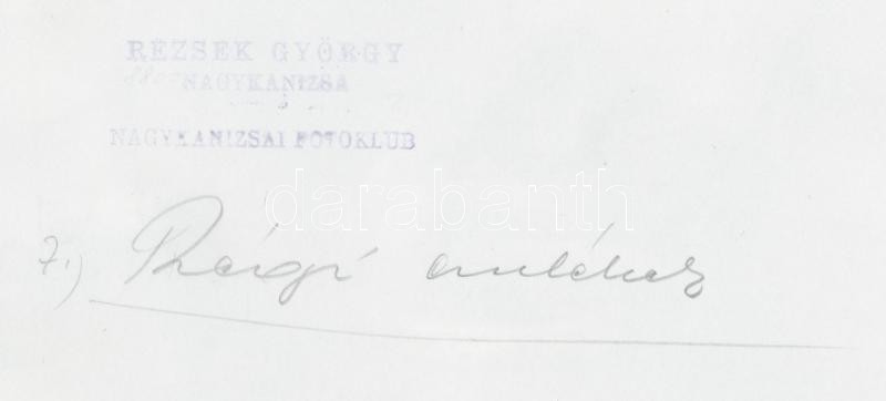 cca 1978 Rezsek György: Régi emlékek, pecséttel jelzett vintage fotómű... https://www.darabanth.com/hu/255-Gyorsarveres/255.0/Festmeny-mutargy-papirregiseg-egyeb/Foto~600018/cca-1978-Rezsek-Gyorgy-Regi-emlekek-pecsettel-jelzett-vintage-fotomuveszeti-alkotas-18x24~II1240153