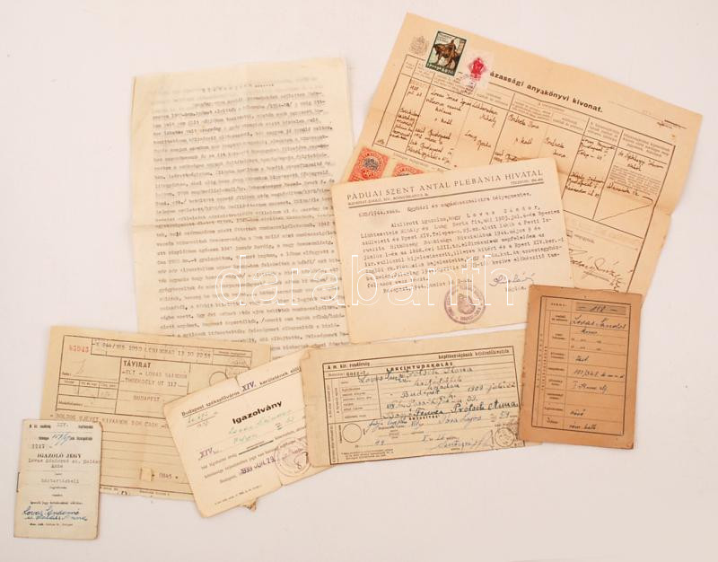 1939-1946 A Don-kanyarba munkaszolgálatra besorozott izraelita származású személy önéletrajza és egyéb iratai(igazoló jegy, igazolvány, plébániai igazolás átkeresztelkedésről, házassági anyakönyvi kivonat, zsoldkönyv)