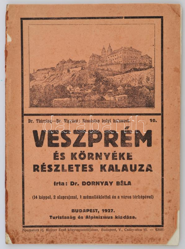Dornyay Béla: Veszprém és környéke részletes kalauza. Bp., 1927, Turistaság és Alpinizmus. 32. p. 14 képpel, 2 alaprajzzal, 1 műmelléklettel és a város térképével. Kiadói papírkötésben.