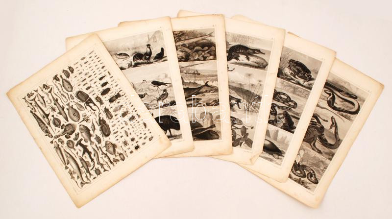 cca 1880 6 various wood engravings about the world fauna: reptiles, fishes, birds, etc., in various sizes