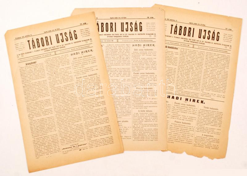 1915 Przemyśl, Tábori Újság, a 23. honvéd gyalogezred által Przemyśl első és második ostroma alatt naponta megjelentetett újság 135-137. száma, szakadásokkal