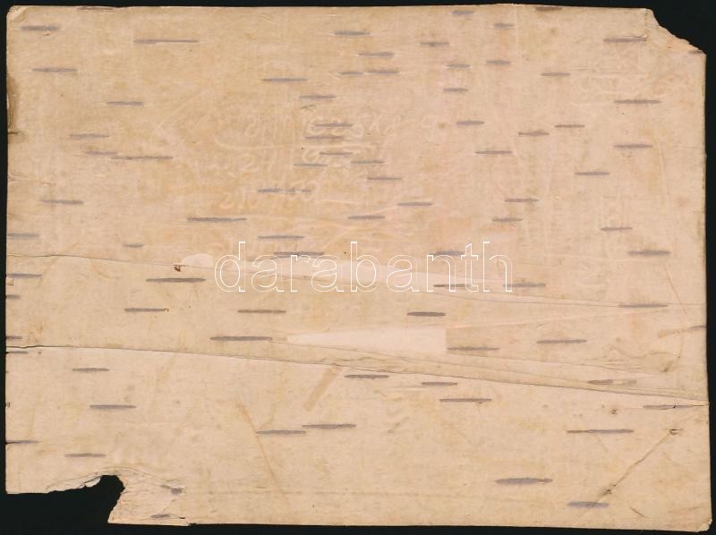 Leírás: 1916 Díszesen megrajzolt nyírfakéreg lap "Karácsonyi emlék orosz fogságból 1916, Langmár József" felirattal, szélein kis sérülésekkel