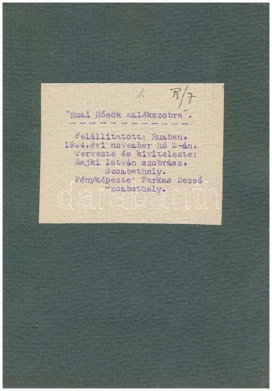 1924 A "Rumi Hősök Emlékszobra" kartonra ragasztott, hátoldalon felira... https://www.darabanth.com/hu/255-Gyorsarveres/255.0/Festmeny-mutargy-papirregiseg-egyeb/Militaria~600027/1924-A-Rumi-Hosok-Emlekszobra-kartonra-ragasztott-hatoldalon-feliratozott-foto-13x9-cm~II1240631