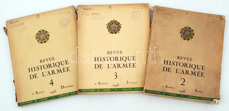 1946 Revue Historique de L'Armée francia folyóirat 2., 3. és 4. száma ... https://www.darabanth.com/hu/255-Gyorsarveres/255.0/Festmeny-mutargy-papirregiseg-egyeb/Militaria~600027/1946-Revue-Historique-de-LArmee-francia-folyoirat-2-3-es-4-szama-French-journal~II1222400