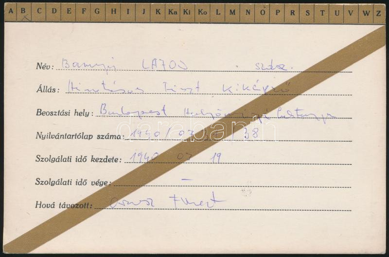 Névre szóló, kitöltött tiszti karton https://www.darabanth.com/hu/255-Gyorsarveres/255.0/Festmeny-mutargy-papirregiseg-egyeb/Militaria~600027/Nevre-szolo-kitoltott-tiszti-karton~II1240798